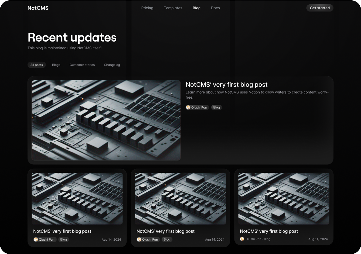 const [page] = await nc.query.blog.get(pages[0].id);ブログのデータを取得するには、このようにnotcms SDKの関数を利用します。(テンプレートには追加済みのため、スキップ可能)